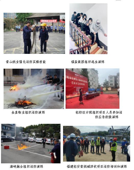 二是消防知識大學習。全系統(tǒng)上下組織開展消防安全知識培訓,以案為鑒強警示,敲響警鐘保安全。公司本部將消防宣傳月要求納入中心組學習,圍繞“強化安全生產(chǎn)責任落實 有效防范化解各類安全風險”主題開展交流研討;青山紙業(yè)邀請福州民安消防有限公司高級講師開展了11場次的消防安全拓展培訓;海峽融合組織開展“119”主題消防安全知識測試;福鹽集團、輕紡設(shè)計院、輕工所、金皇物業(yè)等組織專題培訓,傳達學習省政府、福建輕紡關(guān)于開展2023年消防宣傳月活動的通知精神及《消防法》等法律法規(guī),組織人員觀看消防安全警示教育片和典型火災(zāi)事故案例,切實增強廣大員工消防安全意識。