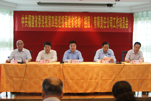 根據(jù)省委統(tǒng)一部署,省委巡視四組進(jìn)駐福建輕紡(控股)公司開(kāi)展巡視工作。2018年5月8日上午,省委巡視四組巡視福建輕紡(控股)公司工作動(dòng)員會(huì)召開(kāi)。會(huì)前,省委巡視辦張國(guó)明副主任主持召開(kāi)見(jiàn)面溝通會(huì),傳達(dá)了中央五年巡視規(guī)劃的要求和省委書(shū)記于偉國(guó)對(duì)巡視工作的指示精神。動(dòng)員會(huì)上,省委巡視四組江玉平組長(zhǎng)就即將開(kāi)展的巡視工作作了動(dòng)員講話,省委巡視辦副主任張國(guó)明就配合做好巡視工作提出要求,福建輕紡(控股)公司黨組副書(shū)記、總經(jīng)理黃文定主持會(huì)議并作表態(tài)發(fā)言。