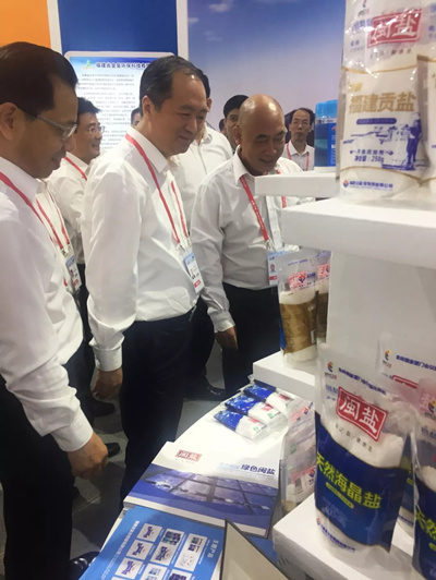 展會(huì)期間,省委常委、常務(wù)副省長張志南,副省長鄭新聰,省國資委黨委書記、主任邵玉龍,寧德市委書記郭錫文等領(lǐng)導(dǎo)蒞臨福建輕紡展臺(tái)視察參觀,福建輕紡黃文定總經(jīng)理、省鹽業(yè)集團(tuán)公司徐宗明董事長向各位領(lǐng)導(dǎo)介紹了企業(yè)改革創(chuàng)新發(fā)展所取得的成效,并著重介紹了省鹽業(yè)集團(tuán)公司新推出的“閩鹽”牌系列產(chǎn)品。