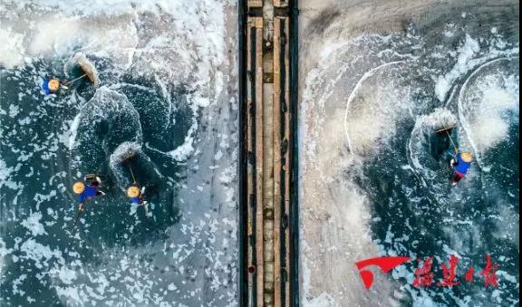 在寒冷的冬季,晶核容易黏附在池底,降低結(jié)晶速度,為了使結(jié)晶顆粒均勻,提高晶體的純度,鹽工們得冒著嚴(yán)寒進(jìn)行多次旋鹽和翻動鹽粒,這樣產(chǎn)出的鹽才能達(dá)到顆料均勻、粒度適宜,成品就可直接用于包裝成小包裝食鹽,真正做到原生態(tài)、純天然、全手工。