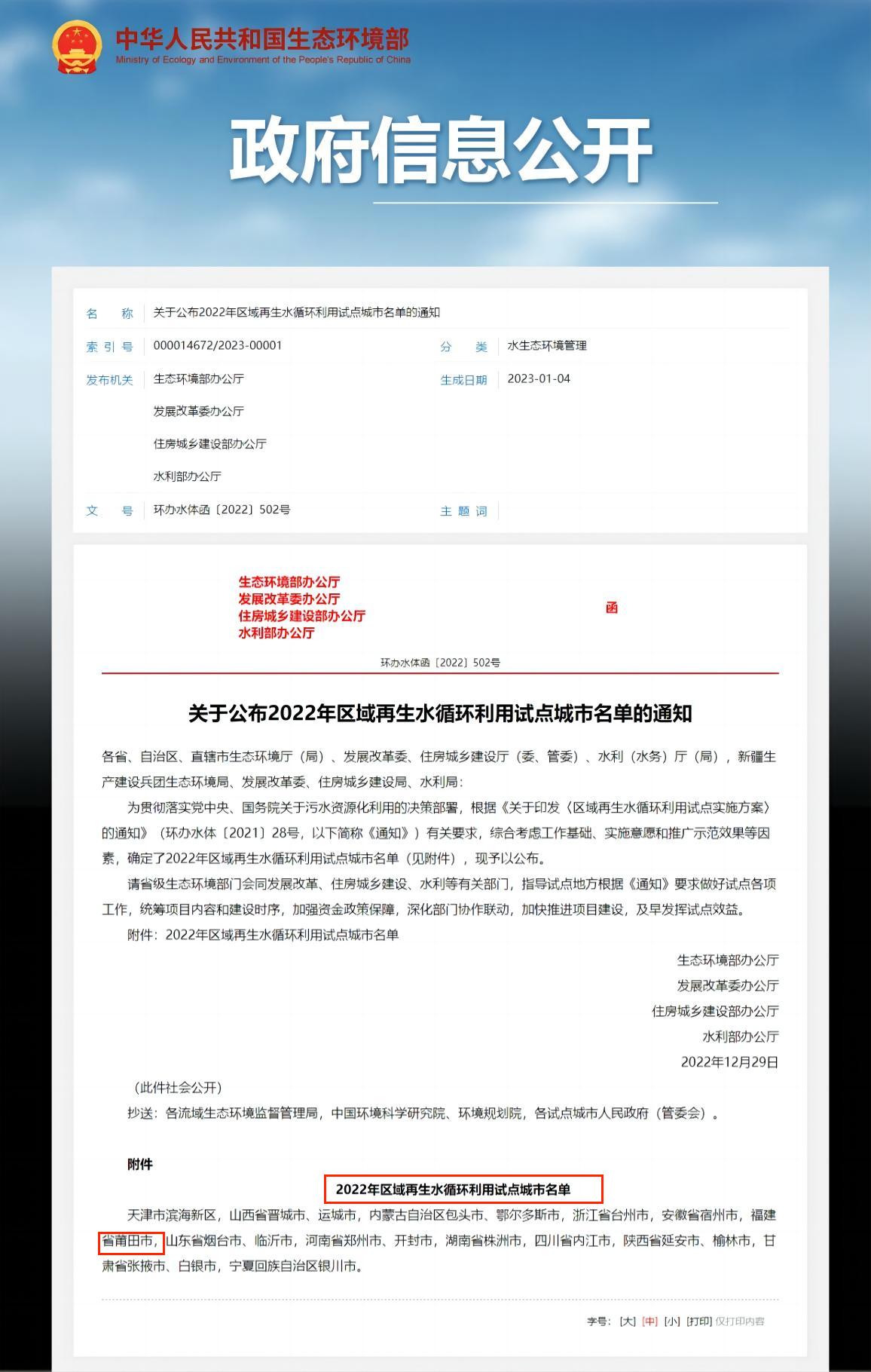 日前,生態(tài)環(huán)境部辦公廳、發(fā)展改革委辦公廳、住房城鄉(xiāng)建設(shè)部辦公廳、水利部辦公廳聯(lián)合公布《2022年區(qū)域再生水循環(huán)利用試點(diǎn)城市名單》,莆田市成功入列,為全省唯一入選城市。作為試點(diǎn)申報(bào)支持的專業(yè)技術(shù)服務(wù)團(tuán)隊(duì),金皇環(huán)保公司提供了申報(bào)方案編制、全流程技術(shù)咨詢服務(wù),全面助推莆田市再生水循環(huán)利用試點(diǎn)城市建設(shè)。