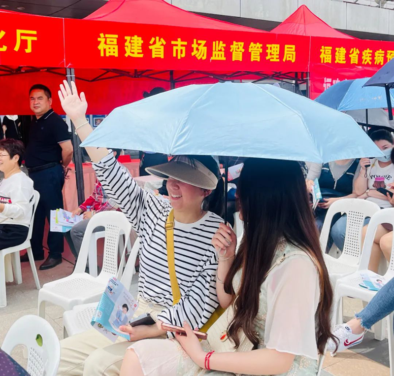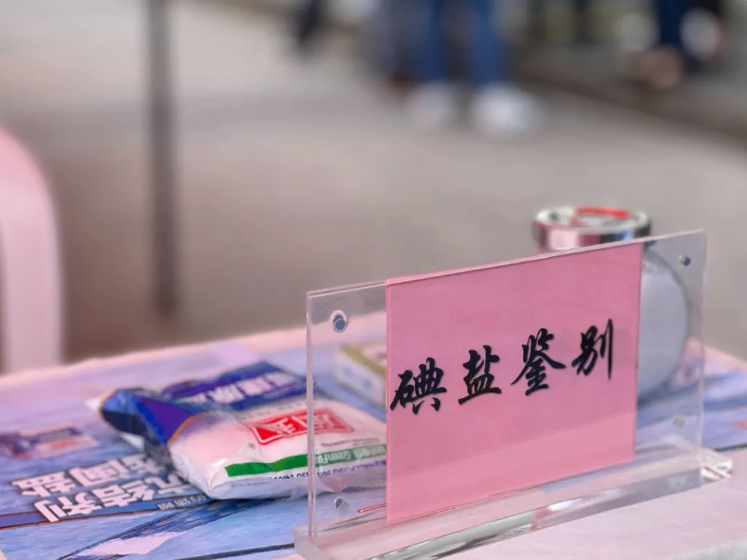 在福鹽集團(tuán)的宣傳臺前人頭攢動,工作人員們向前來咨詢的消費(fèi)者們積極宣傳,他們介紹道“食用碘鹽是預(yù)防碘缺乏病最簡便、安全、有效的方式。”
