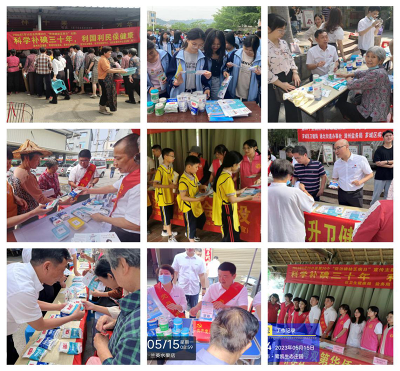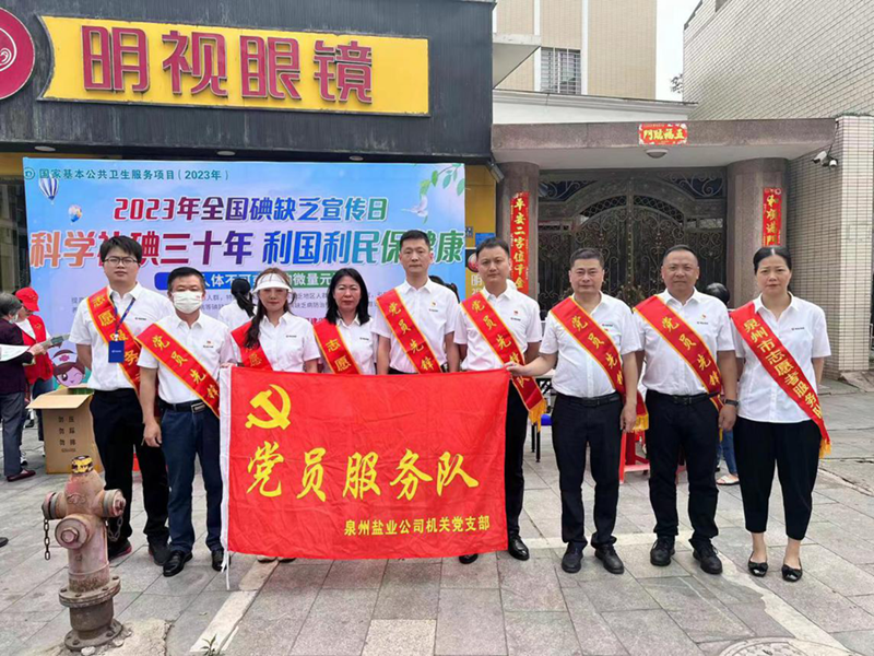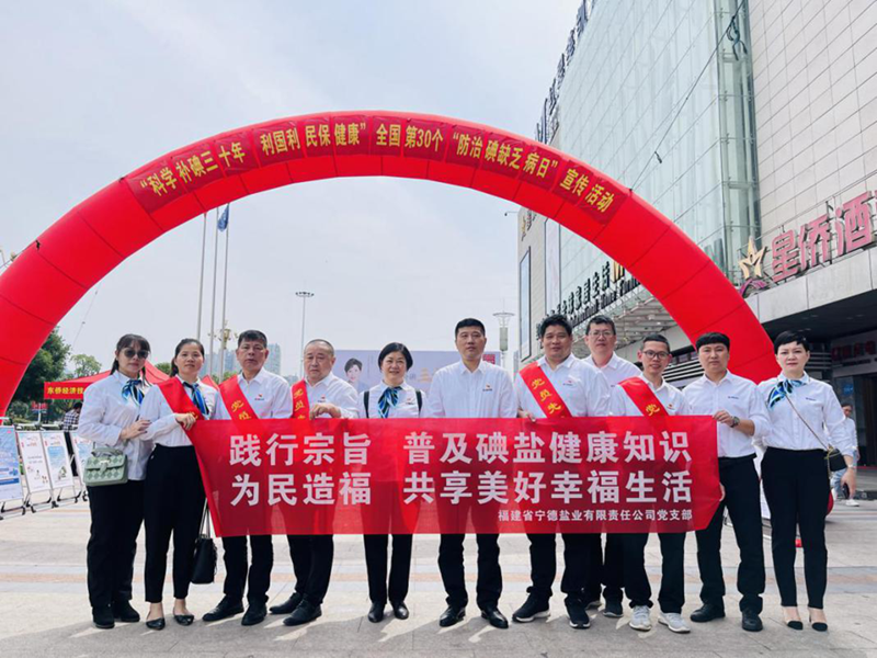 為深入開展學(xué)習(xí)貫徹習(xí)近平新時(shí)代中國特色社會主義思想主題教育,牢牢把握主題教育的目標(biāo)要求,在開展5.15“防治碘缺乏病日”宣傳活動中,福鹽集團(tuán)黨委充分發(fā)揮各級黨組織、黨員干部的先鋒作用,積極履行社會責(zé)任,以“踐行宗旨為民造?!睘橹埸c(diǎn),以開展“我為群眾辦實(shí)事”實(shí)踐活動、“黨旗在一線高高飄揚(yáng)”活動為結(jié)合點(diǎn),以增強(qiáng)人民群眾獲得感、幸福感、安全感為著力點(diǎn),積極配合省衛(wèi)健委、工信廳、市場監(jiān)督管理局、疾控中心等部門,在寧德市聯(lián)信財(cái)富廣場開展以“科學(xué)補(bǔ)碘三十年,利國利民保健康”為主題的省級主會場宣傳活動,各地市分會場積極響應(yīng),現(xiàn)場熱鬧非凡。