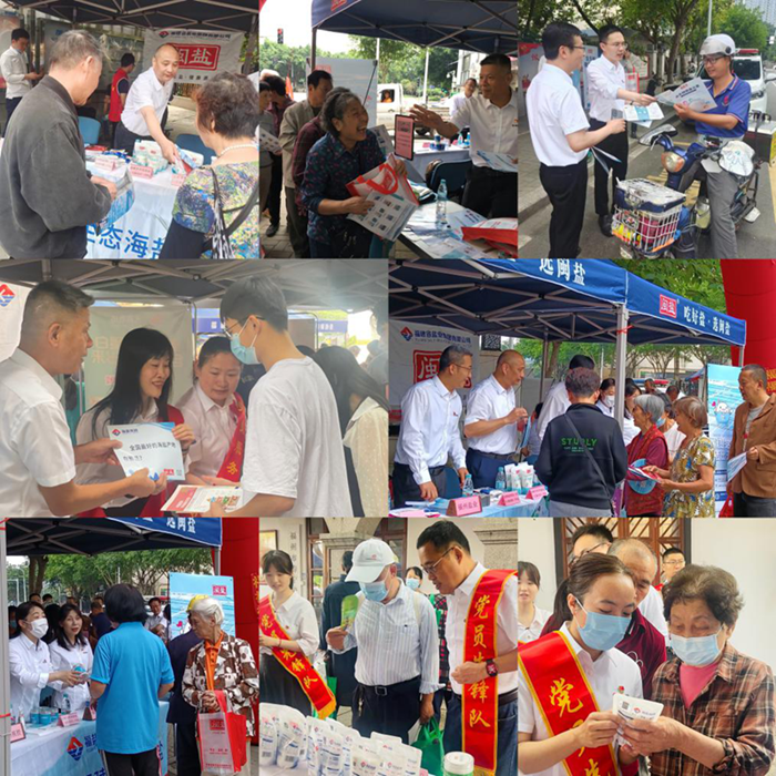福州鹽業(yè)黨總支和福鹽集團(tuán)機(jī)關(guān)第一、第二黨支部黨建共建結(jié)對,配合福建省衛(wèi)生健康委員會、福州市疾病預(yù)防控制中心、福州市衛(wèi)生健康委等單位,在福州市鰲峰光明港公園、福州中山紀(jì)念堂開展5.15“防治碘缺乏病日”、“全民營養(yǎng)宣傳周”宣傳活動暨“我為群眾辦實(shí)事”主題黨日活動。共發(fā)放宣傳資料1500余份,現(xiàn)場接受咨詢500余人,受眾人數(shù)1000余人。