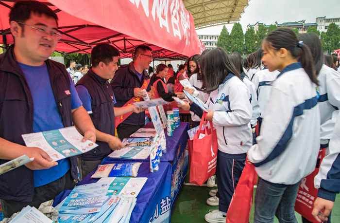 三明鹽業(yè)公司黨員服務(wù)隊(duì)深入學(xué)校開展進(jìn)校園宣傳活動,黨員服務(wù)隊(duì)耐心細(xì)致地解答師生提出的各種相關(guān)問題。通過小手拉大手的形式,鼓勵(lì)學(xué)生做一個(gè)健康知識的傳播者,將今天學(xué)到的健康知識分享給自己的家人、同學(xué)和朋友,讓更多的人了解碘以及碘缺乏病防治知識。