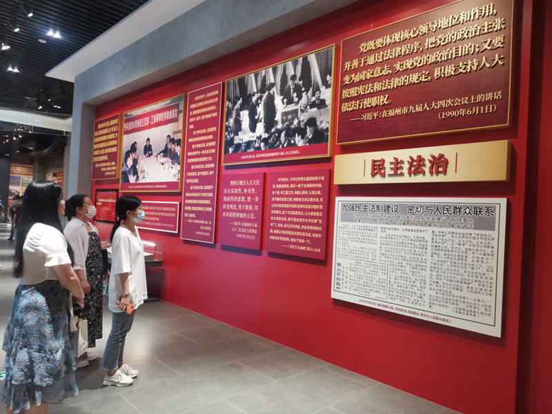 在講解員的引導和介紹下,大家有序進入展廳參觀,認真觀摩了一份份詳盡的歷史文件、一段段珍貴的影像資料、一個個珍藏的老物件,深入了解了“3820”戰(zhàn)略工程的精髓要義和深刻內(nèi)涵。展館中,林則徐紀念館、鼓嶺老建筑、金沙村民宅,運用了融合沉浸式影像空間、大型投影、互動翻書等多媒體、數(shù)字化聲光電技術,讓大家仿佛置身當年的歷史情境,更加真切體會到習近平總書記人民至上的價值追求、放眼世界的宏大格局。