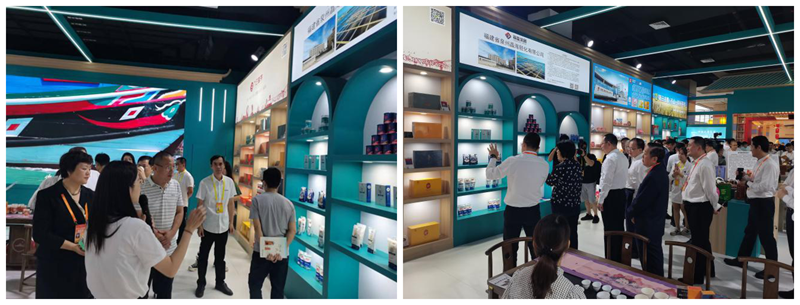 圖為晶海輕化攜“閩鹽”牌生態(tài)海鹽及“福鹽”牌系列產(chǎn)品入駐泉港館展區(qū)