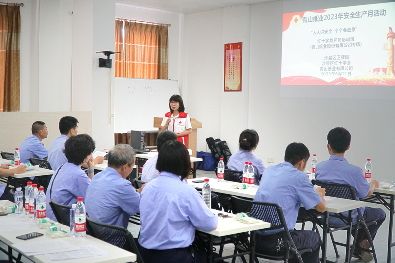 今年是全國第22個“安全生產(chǎn)月”,活動主題是“人人講安全 個個會應(yīng)急”。為不斷提升員工參與現(xiàn)場救護意識和自救互救能力,保護職工生命健康,助力健康青紙建設(shè),青山紙業(yè)公司工會及安辦抓住省委和省政府、市委和市政府2023年為民辦實事項目落地落實相關(guān)政策,迅速與區(qū)總工會和區(qū)紅十字會取得聯(lián)系,爭取了首期50個應(yīng)急救護員公益培訓(xùn)取證名額。