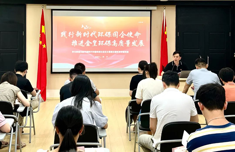 為推動(dòng)學(xué)習(xí)貫徹習(xí)近平新時(shí)代中國(guó)特色社會(huì)主義思想主題教育走深走實(shí),7月12日,金皇環(huán)保黨總支部書(shū)記、董事長(zhǎng)、總經(jīng)理邱宇以“踐行新時(shí)代環(huán)保國(guó)企使命 推進(jìn)金皇環(huán)保高質(zhì)量發(fā)展”為主題,為我司全體在家黨員干部講授主題教育專題黨課。