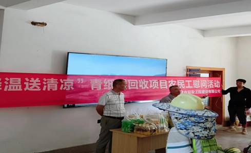 在青紙堿回收項(xiàng)目和連坂污水處理廠三期工程慰問現(xiàn)場,工會(huì)主席程秀林為一線工人發(fā)放藿香正氣水、十滴水、清涼油、西瓜等防暑降溫慰問品,為奮戰(zhàn)在一線的員工送去關(guān)懷,感謝他們在烈日下的堅(jiān)守和奉獻(xiàn)。
