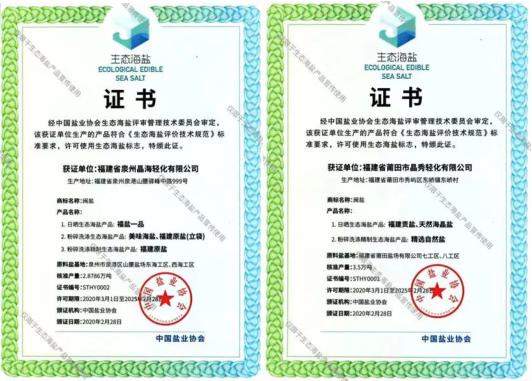 在產(chǎn)品溯源方面,福鹽集團(tuán)以建立產(chǎn)品電子追溯體系為抓手,具有完備的產(chǎn)品質(zhì)量管理體系,建立“一品一碼、一包一碼”的追溯體系,能夠做到來(lái)源可追溯、流向可查詢、風(fēng)險(xiǎn)可防范、責(zé)任可追究,產(chǎn)品嚴(yán)格按照國(guó)家相關(guān)食鹽標(biāo)準(zhǔn)生產(chǎn),質(zhì)量安全可靠,可以放心購(gòu)買(mǎi)和食用。食鹽是作為一種特殊食品進(jìn)行管理的,除了適用《中華人民共和國(guó)食品安全法》的規(guī)定,還適用《食鹽專營(yíng)辦法》,并且有嚴(yán)格、完善的標(biāo)準(zhǔn)體系。福鹽集團(tuán)堅(jiān)持夯實(shí)食鹽質(zhì)量安全管理工作,旗下的福建省莆田市晶秀輕化有限公司及福建省泉州晶海輕化有限公司生產(chǎn)的食鹽均是通過(guò)《生態(tài)海鹽評(píng)價(jià)技術(shù)規(guī)范》標(biāo)準(zhǔn)評(píng)審的產(chǎn)品。