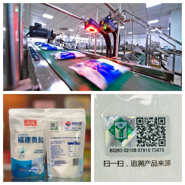 福鹽集團(tuán)通過數(shù)字化轉(zhuǎn)型創(chuàng)新,建設(shè)產(chǎn)品質(zhì)量大數(shù)據(jù)追溯系統(tǒng),集團(tuán)的全系列食鹽產(chǎn)品已采用防偽二維碼追溯體系(一包一碼),該二維碼集合了先進(jìn)的激光防偽技術(shù)和動態(tài)追溯數(shù)據(jù),通過大數(shù)據(jù)應(yīng)用,有效降低造假、售假現(xiàn)象給消費(fèi)者帶來的損害,確保消費(fèi)者買到真正的放心鹽。消費(fèi)者在選購時,只要用手機(jī)掃一掃包裝袋上的二維碼,就可以準(zhǔn)確鑒別這袋鹽的真?zhèn)危⒖梢宰匪莸缴a(chǎn)廠商、生產(chǎn)日期、生產(chǎn)臺班、定點(diǎn)生產(chǎn)企業(yè)證書編號等詳細(xì)生產(chǎn)信息及后續(xù)運(yùn)輸流向等,為廣大消費(fèi)者的食鹽安全保駕護(hù)航。