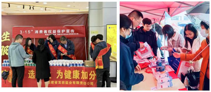 三、開展“3·15”活動(dòng),“閩鹽”黨建亮品牌。組建“黨員服務(wù)隊(duì)”“黨員先鋒隊(duì)”等24支隊(duì)伍,與各地方市場(chǎng)監(jiān)督管理局等相關(guān)單位聯(lián)合開展主題為“吃好鹽·選閩鹽,為健康加分”3·15消費(fèi)者權(quán)益日現(xiàn)場(chǎng)宣傳活動(dòng),全系統(tǒng)累計(jì)舉辦活動(dòng)60場(chǎng),受眾人次約15700人。通過閩鹽有獎(jiǎng)問答、引導(dǎo)參與抖音話題活動(dòng)、講解鹽產(chǎn)品特點(diǎn)等形式,極大提高群眾參與的積極性,不斷推廣健康食鹽的消費(fèi)理念,提升“閩鹽”黨建品牌服務(wù)力。