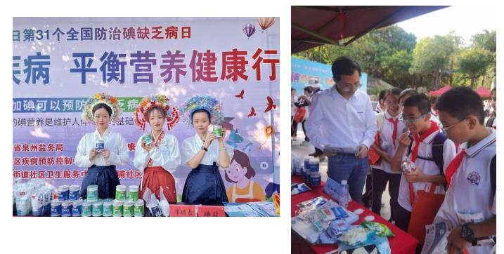 廈門鹽業(yè)組織了鷺鹽先鋒志愿者服務(wù)隊,聯(lián)合廈門市疾控中心在社區(qū)、農(nóng)貿(mào)市場、公園等地舉辦了5場宣傳活動?;顒油ㄟ^邀請權(quán)威專業(yè)醫(yī)生向群眾講解碘對人體的重要性,開展有獎問答及現(xiàn)場講解等多種形式,廣泛宣傳碘缺乏的危害、科學(xué)補碘的重要性以及碘缺乏病的防治知識。此次活動,廈門公司共懸掛橫幅12條、展出展板5塊,現(xiàn)場咨詢600余人次,發(fā)放宣傳單500余份。