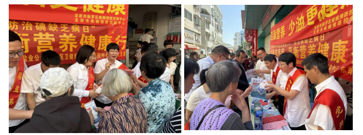 5月14-15日,龍巖鹽業(yè)聯(lián)合疾控中心,圍繞“食鹽加碘防疾病,平衡營養(yǎng)健康行”開展主題宣傳。現(xiàn)場以有獎競答的形式,在問答過程中向群眾普及碘鹽知識,增加與群眾間的互動,有效推進了防治碘缺乏病宣傳,增強了全民防治碘缺乏病意識。活動參與人數(shù)2500余人次,發(fā)放宣傳單2000余份,取得較好成效。