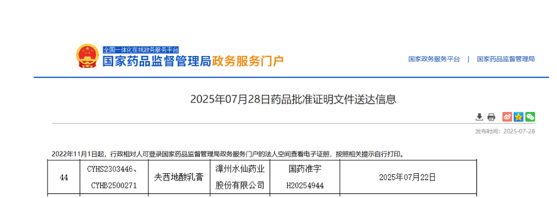 近日,水仙藥業(yè)新產(chǎn)品夫西地酸乳膏獲得國家藥品監(jiān)督管理局頒發(fā)藥品注冊(cè)批件,并視同通過一致性評(píng)價(jià),預(yù)計(jì)于2025年10月投產(chǎn)并上市銷售。
