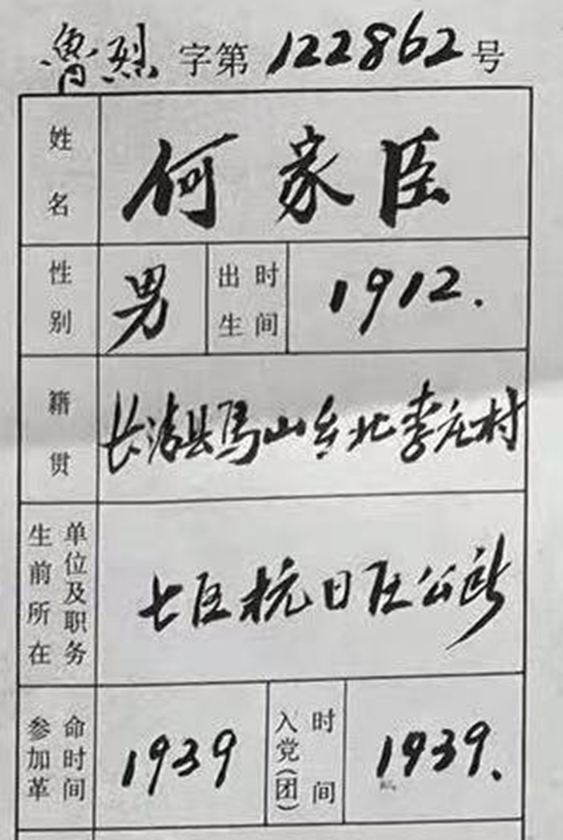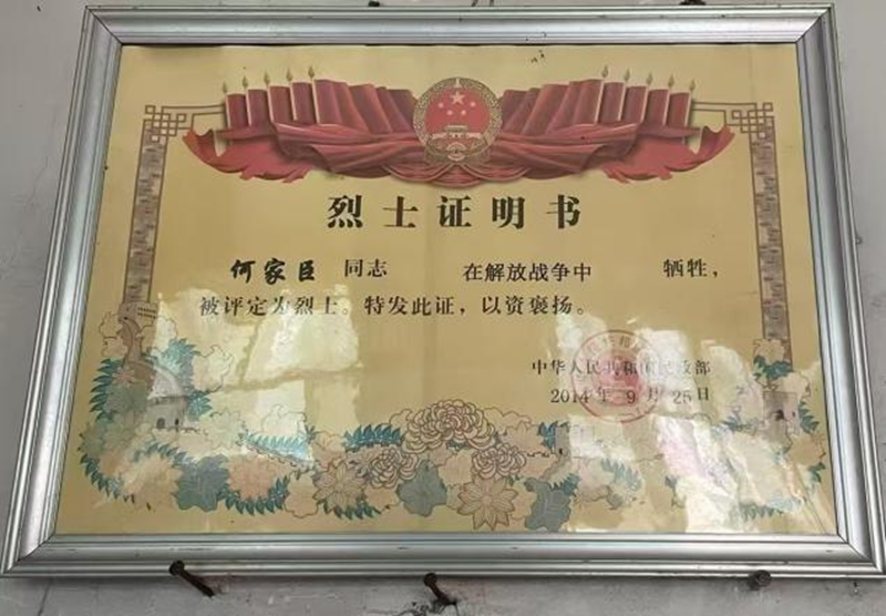 何美龍的曾祖父何家臣,是一名抗戰(zhàn)老兵,1939年加入中國共產(chǎn)黨,曾在抗日戰(zhàn)爭的槍林彈雨中輾轉(zhuǎn)奮戰(zhàn),最終在解放戰(zhàn)爭中英勇犧牲,年僅36歲。