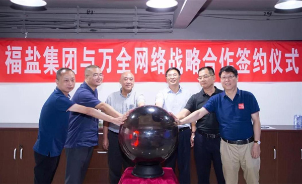 2018年8月2日,福建省鹽業(yè)集團有限公司和萬全速配網(wǎng)絡科技有限公司在萬全網(wǎng)絡福州總部簽訂戰(zhàn)略合作協(xié)議。輕紡控股黃文定總經(jīng)理、省鹽業(yè)公司徐宗明董事長、莊燦陽常務副總,萬全網(wǎng)絡黃浩東董事長、唐為崇總經(jīng)理、張而俊副總經(jīng)理出席簽約儀式。