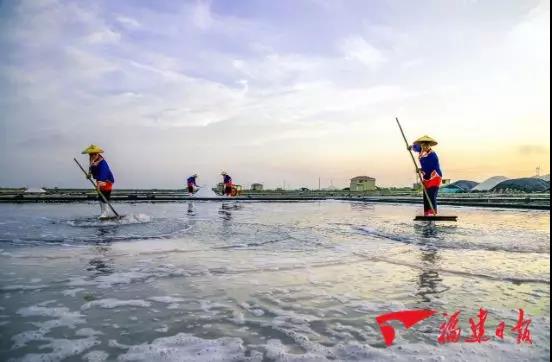 福建,背山而生,面海而興。閩在山中,閩在海中,這里有廣袤森林,也有碧波蕩漾,靈山碧水,澤被萬物。清新的福建你可能知道碧水丹青的武夷山、溫情秀美的鼓浪嶼,卻不熟悉福建東南沿海藏著一片有“天空之鏡”美稱的海鹽鹽田。自古閩族先民在這里以海為田,在這片海天一色的田園辛勤勞作,用智慧和勤勞把藍色的海水用風(fēng)和陽光曬出雪白的鹽。