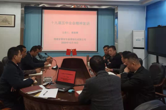 12月18日下午,福建省莆田市晶秀輕化有限公司在公司會(huì)議室舉行學(xué)習(xí)宣傳貫徹黨的十九屆五中全會(huì)精神宣講會(huì)。福建省鹽業(yè)集團(tuán)公司黨委委員、總會(huì)計(jì)師郭俊卿同志作主題宣講